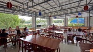 บรรยากาศร้าน “แดงอาหารทะเล” ถูกห้อมล้อมด้วยต้นไม้และธรรมชาติ มีที่จอดรถเพื่ออำนวยความสะดวกสบายให้แก่ลูกค้า อีกทั้งยังมีโต๊ะรับประทานอาหารมากมายเพื่อรองรับแขกอย่างเพียงพอ โดยเฉพาะช่วงเทศกาลหรือวันหยุดที่จะมีลูกค้าเยอะมากเป็นพิเศษ เพื่อให้ทุกครอบครัวได้มารับประทานอาหารทะเลแสนอร่อยและสดใหม่ได้โดยไม่ต้องรอคิว ลูกค้าสามารถเลือกได้ว่าจะนั่งกินลมชมวิวสัมผัสอากาศสบายๆ โดยทางร้านได้สร้างหลังคากันความร้อนเพื่อป้องกันความร้อนและแสงแดด หรือหากต้องการความเป็นส่วนตัวทางร้านก็มีบริการห้องแอร์เพื่อความเป็นส่วนตัวและรองรับสมาชิกในครอบครัวอย่างครบครัน สถานที่ตั้งสามารถเดินทางมาได้อย่างสะดวกสบาย และอยู่ใกล้แหล่งท่องเที่ยวอย่างดอนหอยหลอด วิธีเดินทางแสนง่ายเพียงขับรถออกมาจากกรุงเทพฯ โดยใช้เส้นทางถนนพระรามที่ 2 กม. ที่ 62 จากนั้นเบี่ยงซ้ายเพื่อเข้าทางคู่ขนาน แล้วเลี้ยวซ้ายตรงทางเข้าดอนหอยหลอด ตรงเข้าไปในซอยอีกประมาณ 800 เมตรก็จะเจอร้าน “แดงอาหารทะเล” อยู่ทางด้านซ้ายมือ ระหว่างการเดินทางมาที่ร้านอาหาร จะมีป้ายบอกทางเป็นระยะๆ จึงไม่ต้องกังวลว่าจะหลงทางแต่อย่างใด โดยหากใครที่อยากสัมผัสและลิ้มลองรสชาติความอร่อยและความสดใหม่ของอาหารทะเลสูตรต้นตำรับจากเจ๊แดง สามารถเดินทางมาพิสูจน์ด้วยตัวท่านเองได้ทุกวัน ตั้งแต่ 8.00-19.00 น. ที่ “แดงอาหารทะเล” ตำบลบางแก้ว อำเภอเมือง จังหวัดสมุทรสงคราม เพราะคุณคือ “ครอบครัวของเรา” เจ๊แดงและคุณแสตมป์ จึงต้องรักษาคุณภาพอาหารและการบริการให้ดียิ่งขึ้น เราจึงพร้อมน้อมรับคำติชม ตลอดจนความคิดเห็นจากลูกค้า เพื่อนำมาปรับปรุงคุณภาพการบริการเปรียบเสมือนคนในครอบครัว